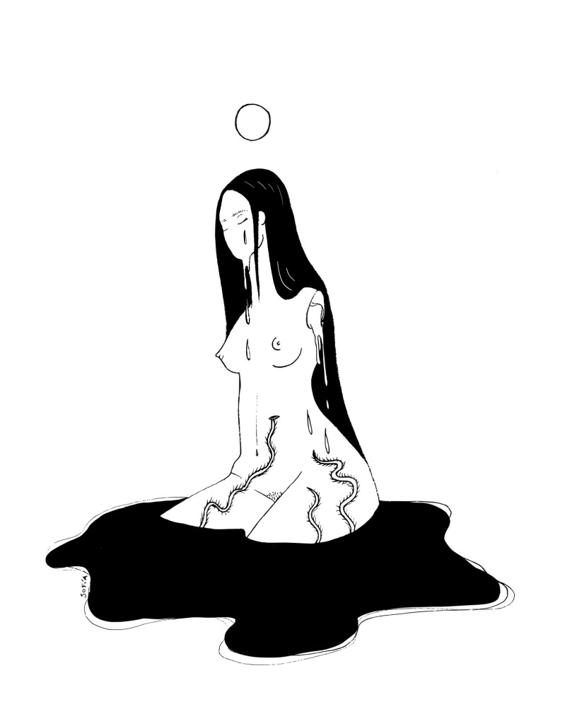 Pasa que el erotismo se me presenta como algo muy fuerte, pero no todos los desnudos para mí son eróticos. A veces puedo subir algo que tiene que ver con los genitales pero no tiene que ver con coger o con el orgasmo. Sí tiene que ver en general con eso porque a mí personalmente un montón de cosas internas e inconscientes se me canalizan por ahí, por esa sensación erótica, aunque no esté relacionado al acto sexual, pero es algo que me pasa. Y porque también el erotismo y la conexión con una misma y con los demás es una de las conexiones más zarpadas que podés tener con alguien, haya amor o no haya amor, es un contacto físico muy directo. Y ahí entran en juego cosas más existenciales, cuando uno llega a esos lugares de conexión. Repito que cuando hablo de erotismo no hablo de genitalidad, hablo de una sensación que no puedo describir: por eso me dedico más a los dibujos que a las palabras para explicar ciertas cosas.